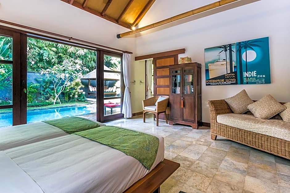 Set amid a Balinese garden, this villa is fitted with sun loungers and a gazebo by the private plunge pool. It has a living area with a day bed, library and a writing desk. The air-conditioned bedroom includes a flat-screen TV and DVD player. Private bathroom comes with a separate shower and a bathtub.